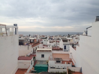Traditional Spanish townhouse situated in Nerja area near to the Parador. This three bedroom town house is very private and has 4 floors. On the ground level you will find a small lounge area, WC, fitted kitchen and a terrace at the rear with outdoor sink, gas boiler etc. The first floor has the family bathroom, a storeroom, and a double bedroom. On the second floor are the other 2 bedrooms, one with twin beds and one with bunk beds. The third floor has two separate roof terraces, the North facing terrace has a washing line and seating area with mountain views, and the other terrace is South facing with sea views and has a built-in BBQ area.