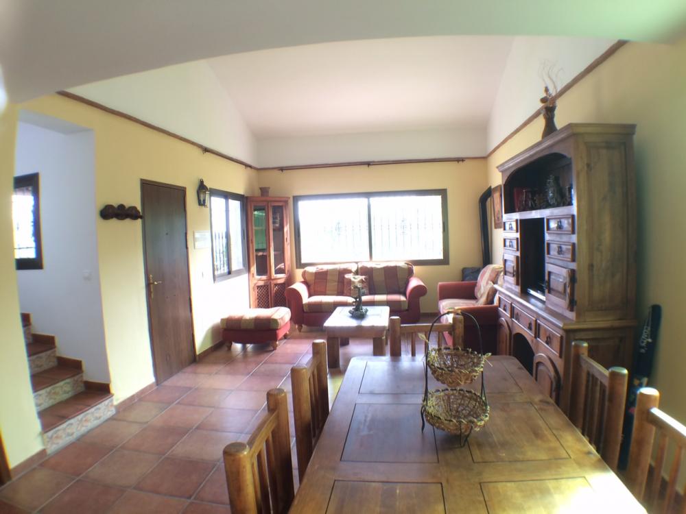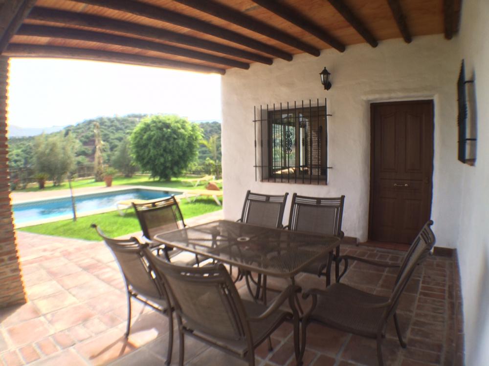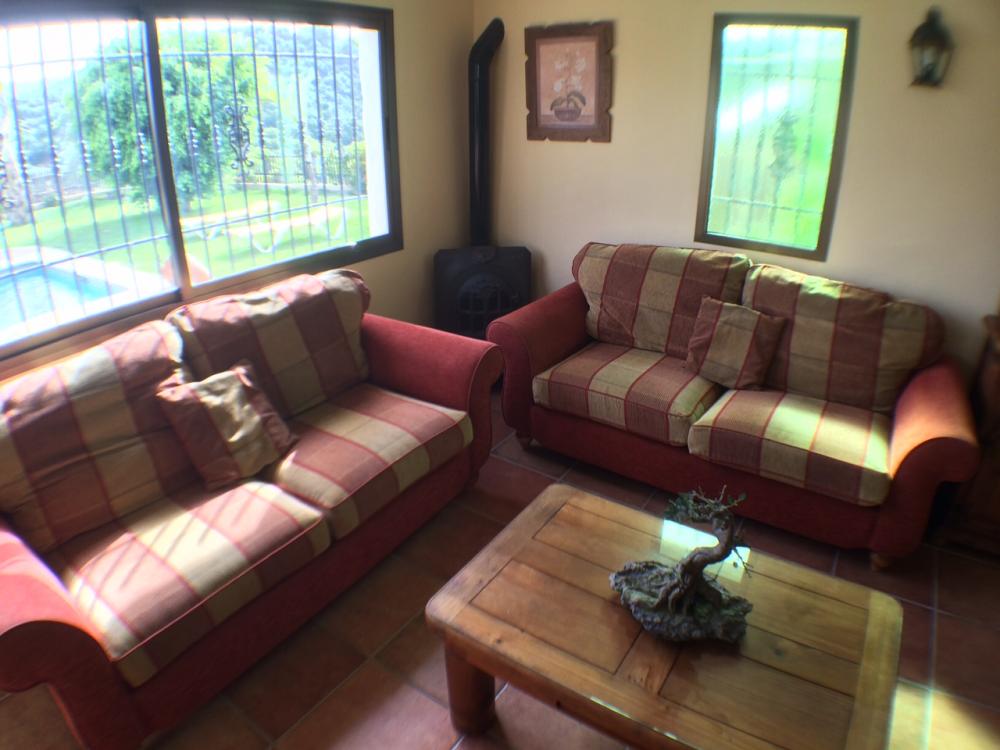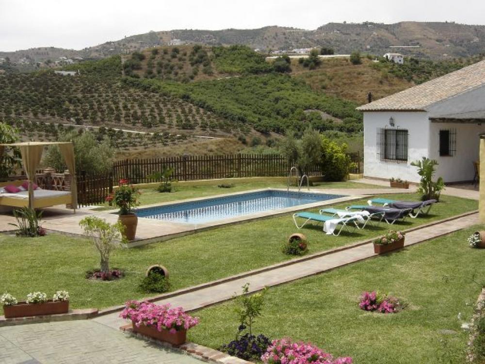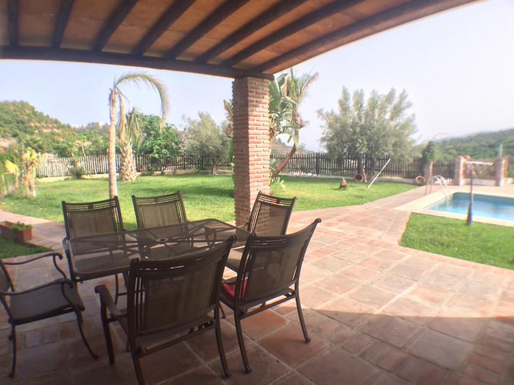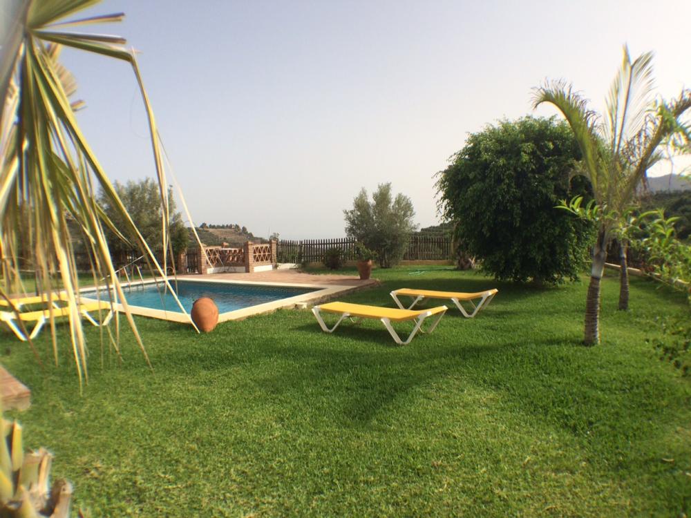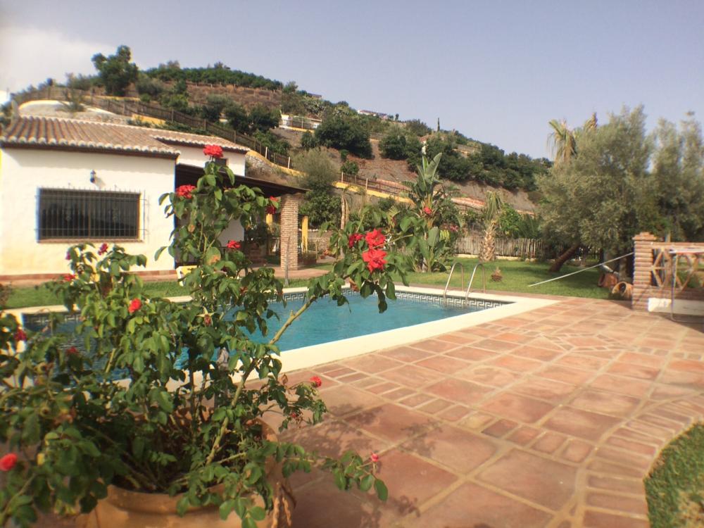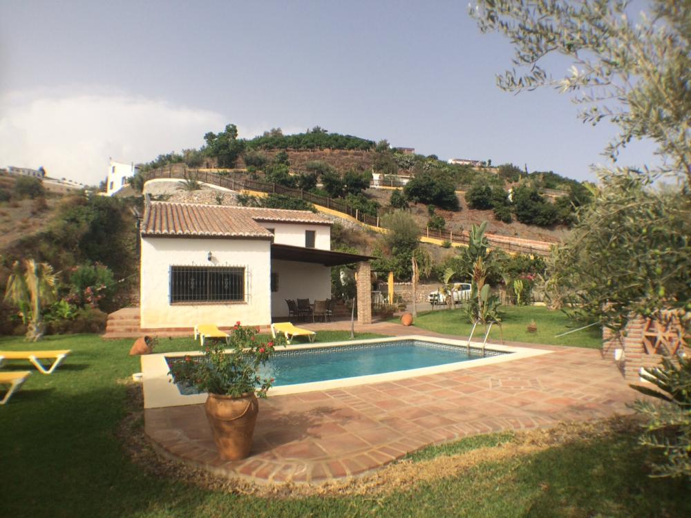 Peacefully located villa in the countryside of Frigiliana. There are three bedrooms and two bathrooms, a rustic kitchen, a spacious lounge with fireplace, terrace and garden area with a large pool. Suitable for a family, this property is private with fencing all around and benefits from views across the countryside and towards the coast of Nerja. Includes maintenance of gardens and pool.
